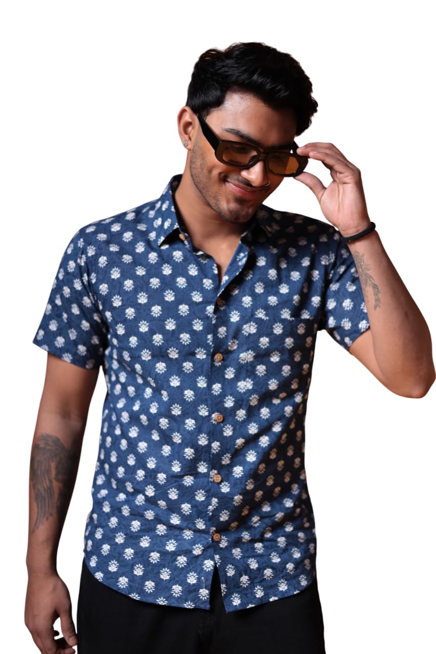 - 🔹 Hand Block Printed by Artisans: Traditional hand block printing technique gives each shirt a unique, handcrafted look. No two shirts are exactly alike!