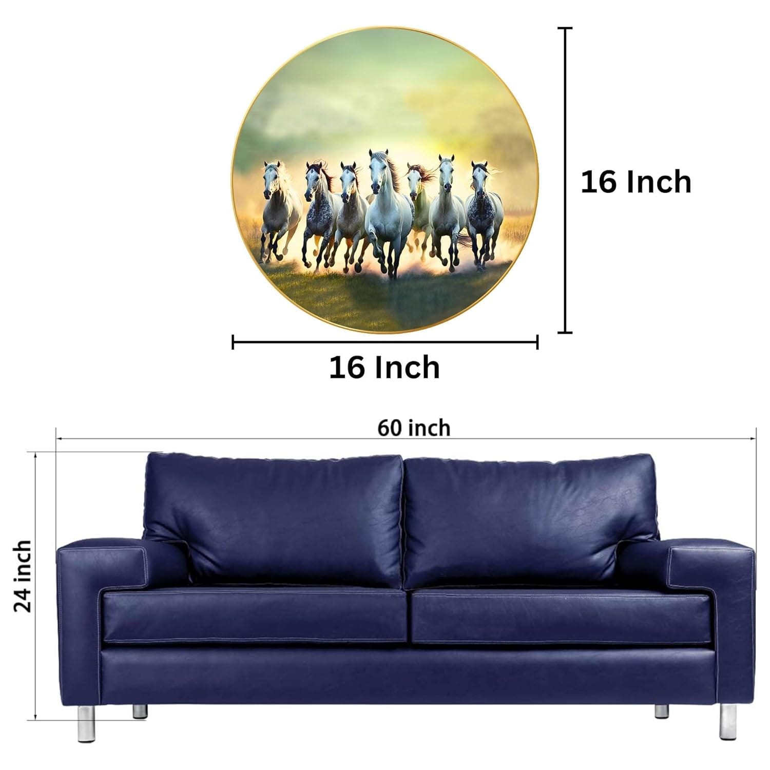Durable and Elegant 7 Horses Vastu Frame: Built with a sturdy round golden frame and crafted from high-quality materials, this 7 horses wall painting with frame adds a touAZ3454-CH of sophistication and positive vibes to any room.