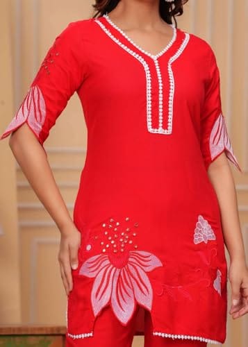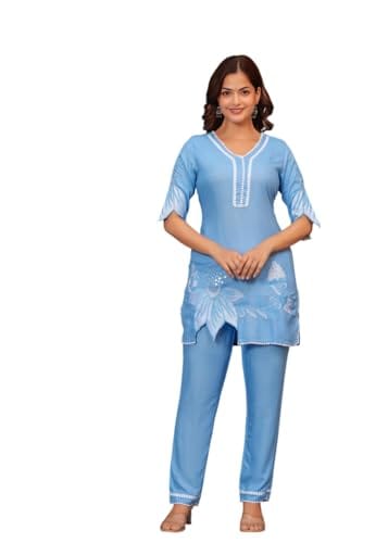 - Comfortable & Relaxed Fit: Designed with a flattering straight Anarkali A- Line Nayra-cut Kurti kurta Suit and relaxed-fit Salwar palazzo pants for ultimate comfort and ease of movement.
