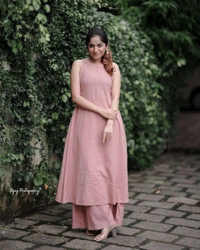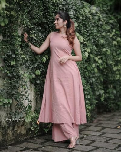 Revolze Women’s Cotton Plain Flared Sleeveless Kurta with Palazzo