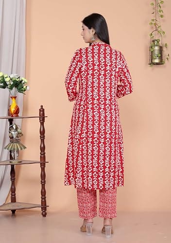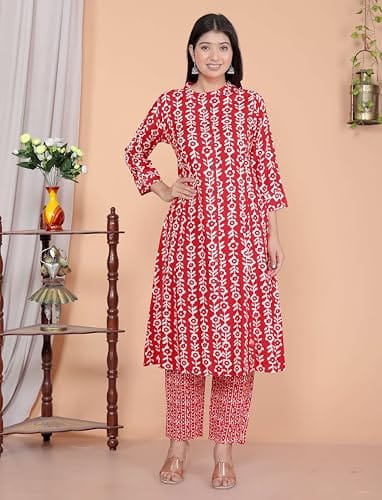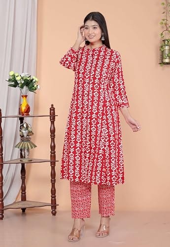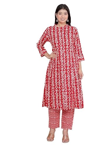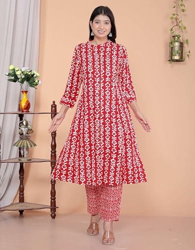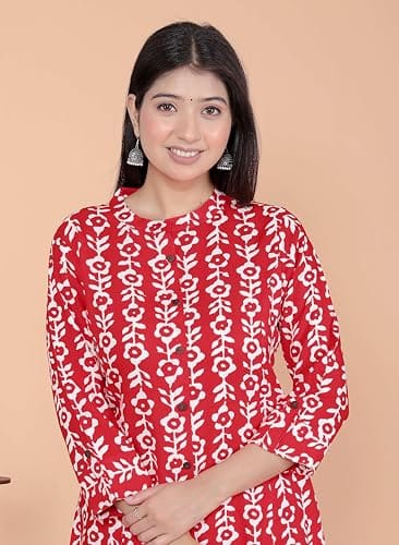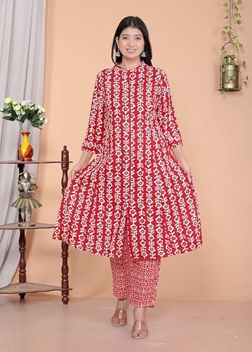 Be the first to review “Revolze Women’s Rayon Floral Printed Mandarin Collar A-Line Kurti with Trousers (Red)” Cancel reply